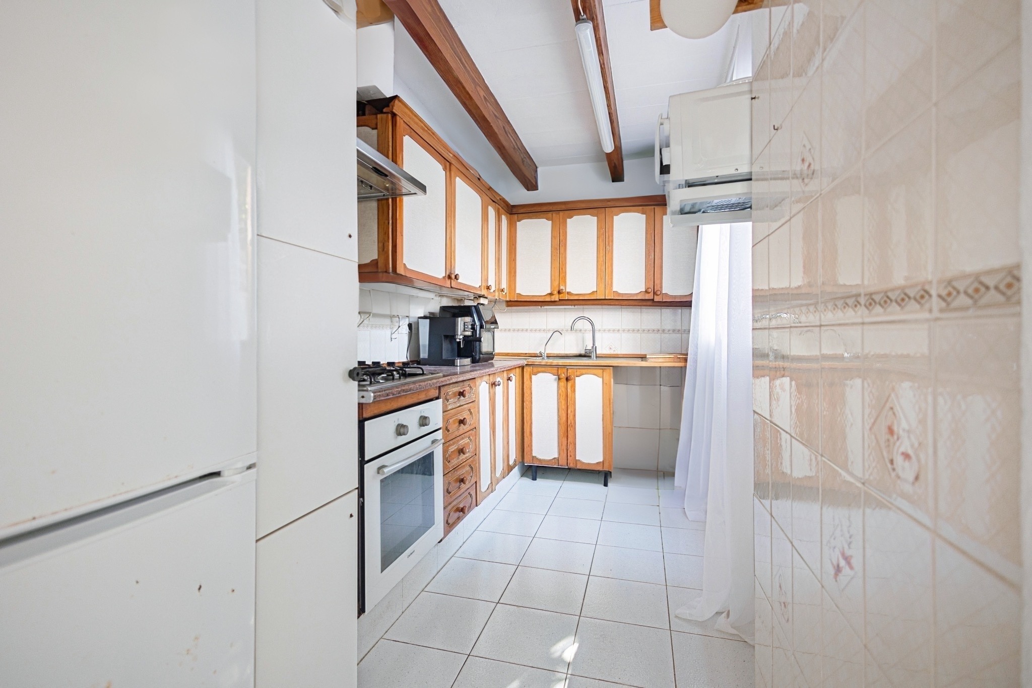 La cocina está orientada hacia el exterior con una ventana que ofrece abundante luz natural y vistas al jardín. Esta ventana tiene el potencial de convertirse en una puerta de acceso al exterior, permitiendo una conexión fluida entre la cocina y la terraza. Además, la cocina puede ser rediseñada según tus preferencias, brindándote la oportunidad de crear el espacio culinario de tus sueños.